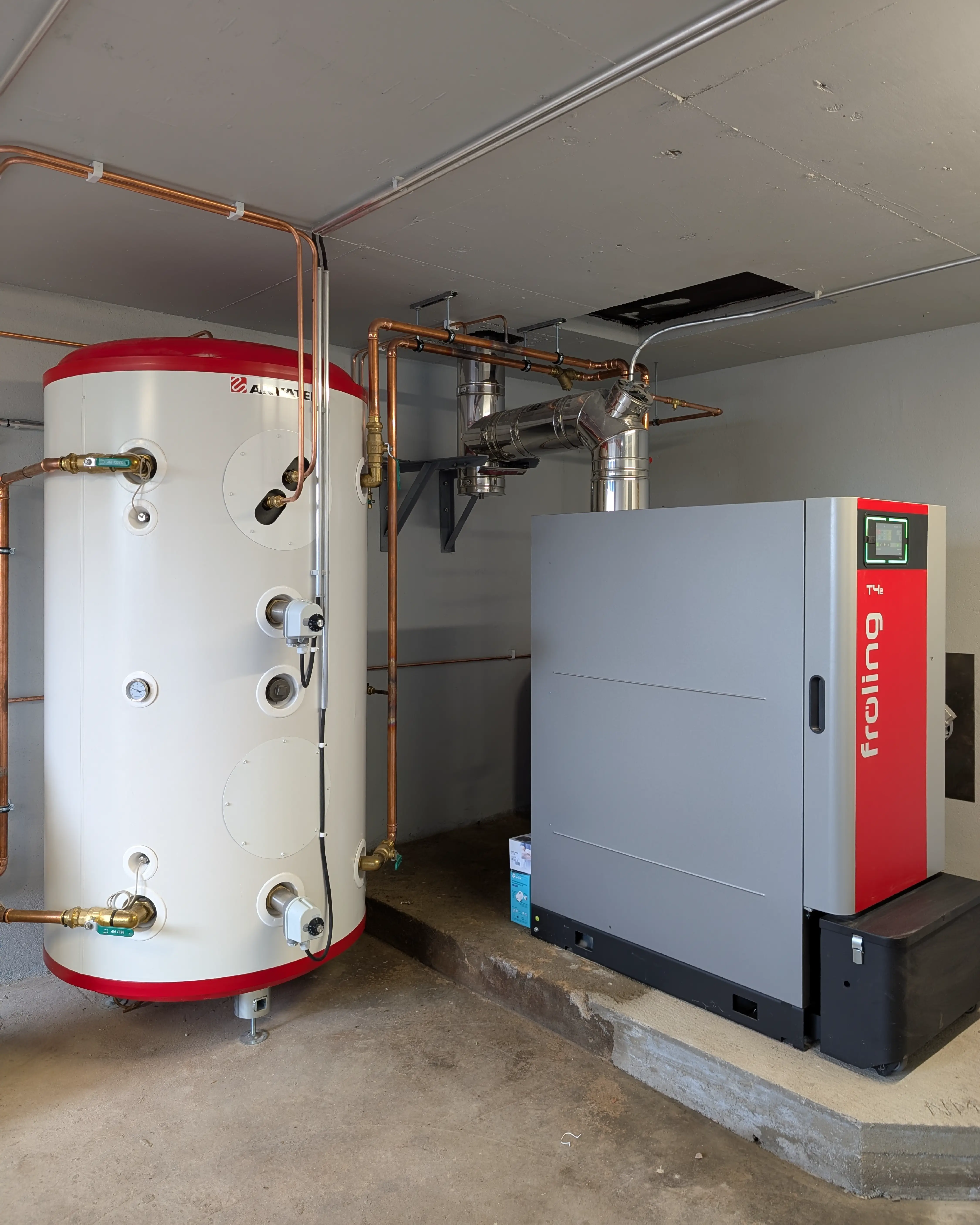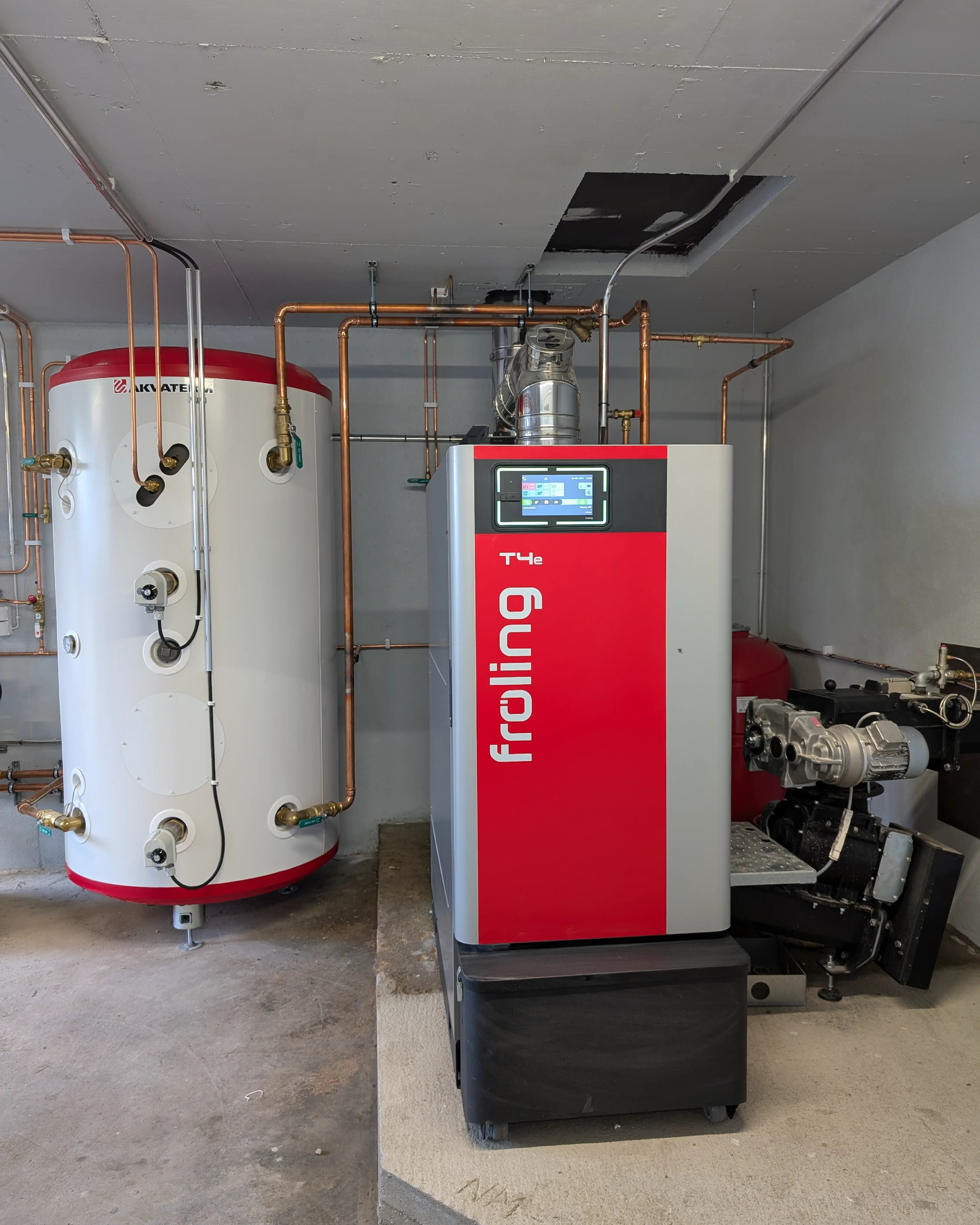 I våras brann Nils värmecentral och verkstad ned och han behövde därför få ett nytt värmesystem på plats innan hösten och kylan kom. Han vände sig till oss och vi såg att tillsammans med ackumulatortankar skulle Nils klara sig bra med en mindre panna. Hans gamla var på 45 kW men vi räknade på saken och såg att Frölings flispanna T4e på 35 kW skulle räcka gott och väl.